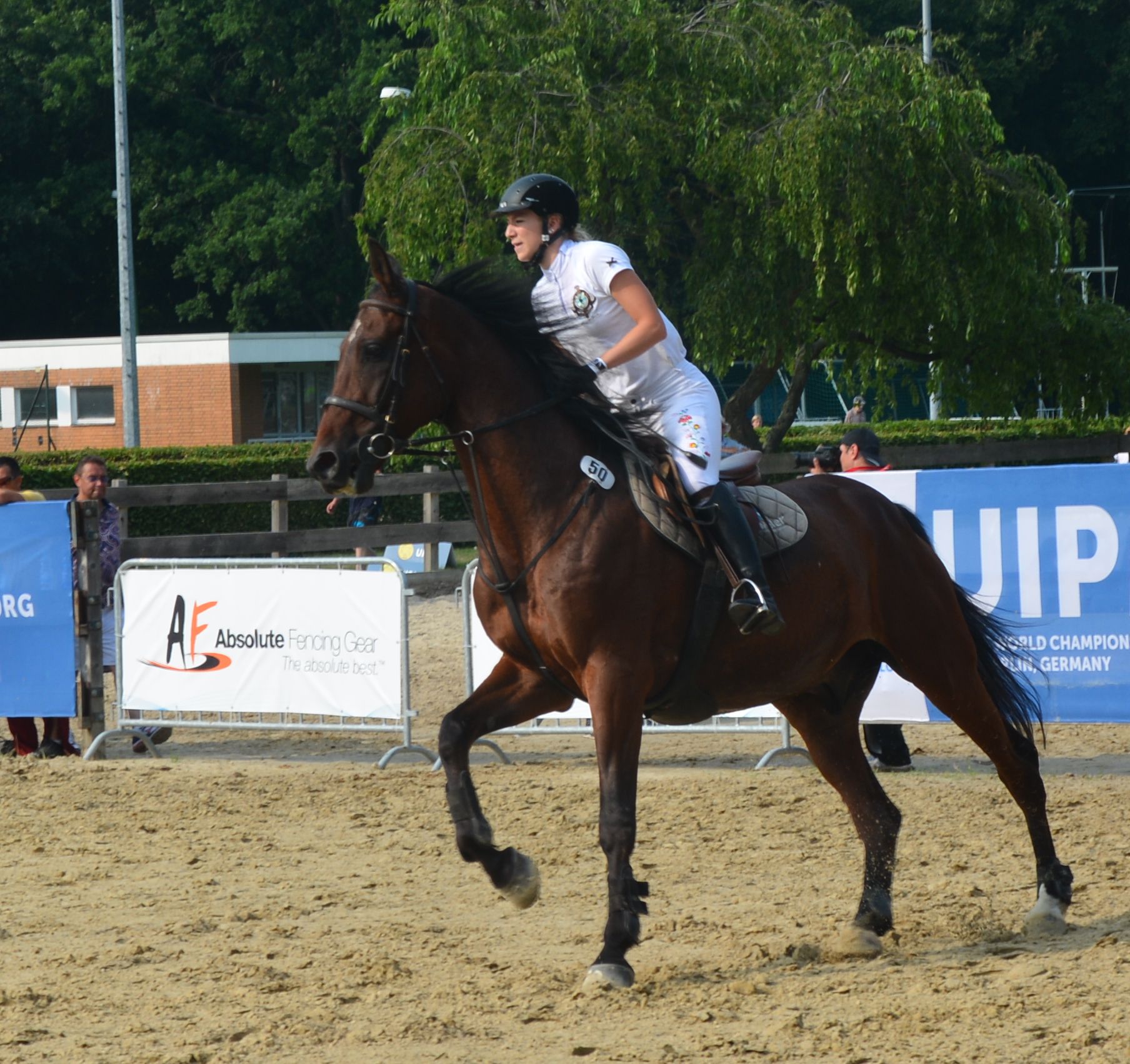 Két szám után Kovács Saci mögött még második volt klubunk korábbi versenyzője, Alekszejev Tamara, ő azonban a lovaspályán az egyik akadály vétele után a lendülettől leesett lováról, ami komoly pontveszteséget eredményezett, nagyban befolyásolta későbbi helyezését. A kombinált számot a 11. helyen kezdte meg, két pozíciót sikerült javítania. A 19 éves Zs. Tóth Anna végig a mezőny második felében állt és ott is fejezte be a versenyt.