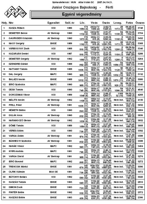A hat versenyszámból négyben a házigazdák állhattak a dobogó tetejére, a női szakágban teljes volt volt a székesfehérvári siker. Férfi egyéniben Kasza Róbert (KSI) 5748 ponntal nyert a székesfehérvári Demeter Bence (5704) és Gauruder Krisztián (5432) előtt. Csapatban a volánosoké (Demeter B., Gauruder, Demeter Gergely) volt az arany 16 400 ponttal, a KSI első csapata előtt (16 276). Váltóban fordított eredmény született, a KSI 5572 ponttal győzött az Alba Volán-Bericap (5284) előtt.